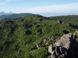 蝶々深山(1836m)より望む車山(右画像)・・・山頂に見える建物がレーダー施設