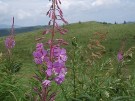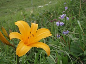 車山の遊歩道で見る花々(左画像はニッコウキスゲかな)/右画像の花は分かりません^_^;